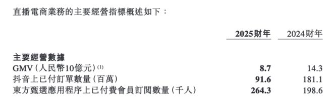 东方甄选方面表示,公司业务转型三年来,遭遇了无数始料未及的困难,对公司意义重大的2025财年,持续经营业务(即自营产品及直播电商业务)净营收由65亿元人民币同比减少32.7%至44亿元;净溢利由2025财年上半年的亏损转正,实现净溢利0.062亿元,但2024财年净溢利2.491亿元。