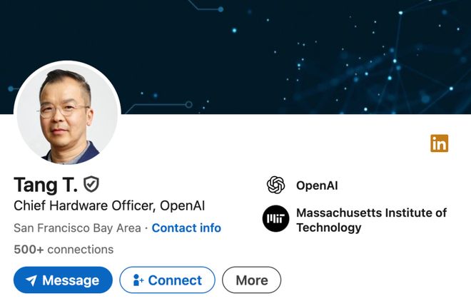 io被OpenAI 并购后,Tang Tan转任OpenAI硬件负责人,主导面向消费者的首款设备。