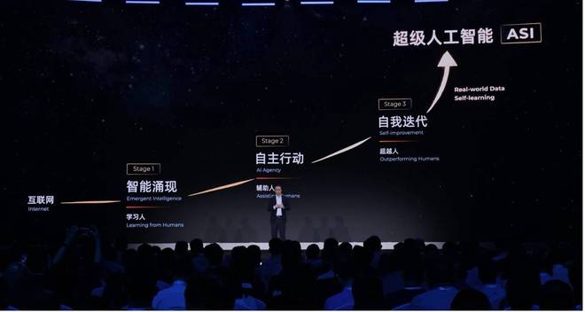 吴泳铭首次系统阐述了通往 ASI 的三阶段演进路线: