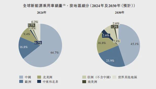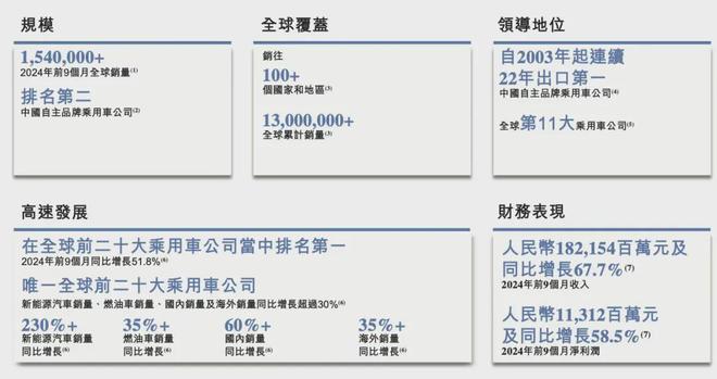 同时,招股书中还提到,在海外多个主要乘用车市场的销量中名列前茅,2024年奇瑞分别在欧洲、南美和中东及北非地区销量位列中国自主品牌乘用车公司第一,以及在北美及亚洲(中国除外)销量位列中国自主品牌乘用车公司第二。