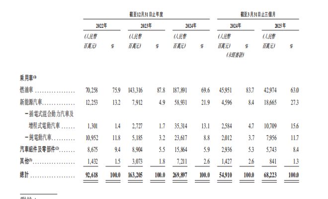 特别是今年前3个月,来自新能源汽车的占比已然来到了27.3%,收入为186.65亿元,同比增长306.11%。而且奇瑞在招股书中也特别说明,2025年第一季度收入增加主要是由于新能源汽车销量增加。