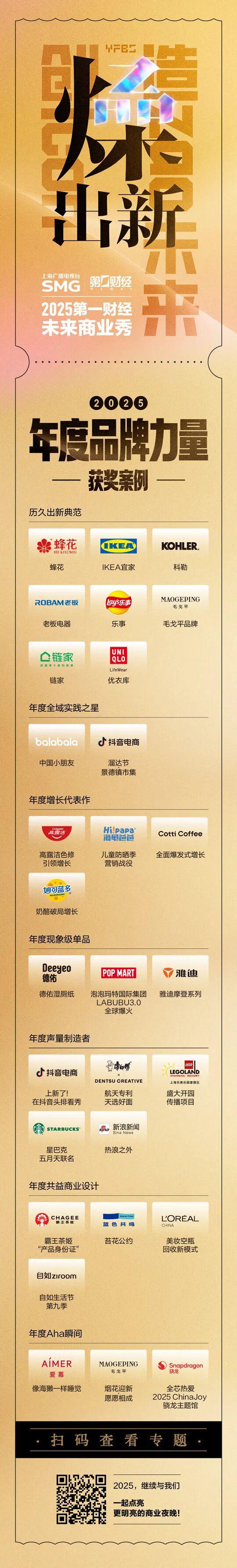 2025年对品牌来说是激烈迎战、直面挑战的一年。在“历久出新典范”的案例中,我们表彰能够经受时间考验与周期冲击的经典品牌——蜂花、IKEA宜家、科勒、老板电器、乐事、毛戈平品牌、链家、优衣库这8个品牌,乘风破浪,秉持经典,不忘创新。
