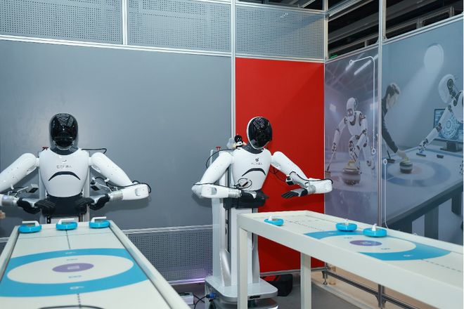 在体验中心,记者看到消费者可体验机器人运动极限,拳击擂台、棋牌对弈、冰壶竞技等互动项目。