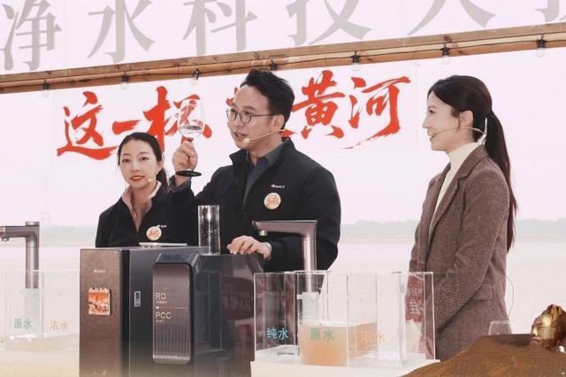 在直播环节朱磊上阵,进行了一场极具视觉冲击力的净水挑战。面对取自黄河的浑浊原水,格力6个9净水机现场过滤,朱磊毫不犹豫将净化水一饮而尽,并豪情宣告“这一杯,敬黄河!敬我们永不妥协的中国科技!”随后,格力工程师通过浊度、TDS值、重金属、硬度等多重直观实验,验证了双芯六级精滤系统的强大效能,尤其是99.9999%的除菌率10年长效RO膜的顶尖性能,令观众叹服。