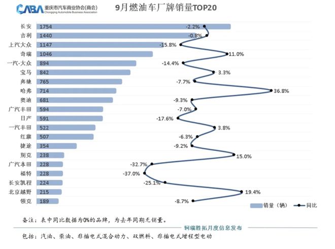 9月份,长安、吉利、上汽大众以1754辆、1440辆、1147辆的销量稳居重庆燃油汽车厂牌销量排名前三。