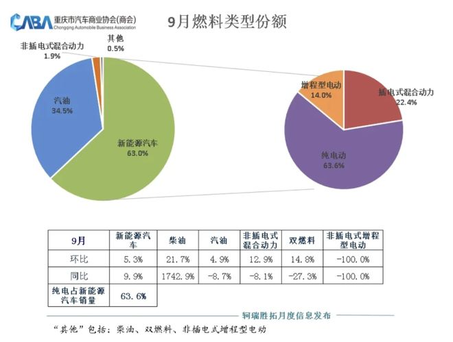 9月份,在市场份额占比超六成的新能源汽车中,纯电车型占新能源销量的63.6%。