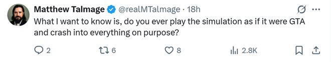 然而,这一战略路径也引发了新的市场讨论和投资者的疑虑。根据X上部分网友的评论,一些观点认为,如果模拟技术发展到可以高度替代真实世界数据,理论上竞争对手无需拥有庞大的车队,也能通过模拟足够多的场景来追赶特斯拉。