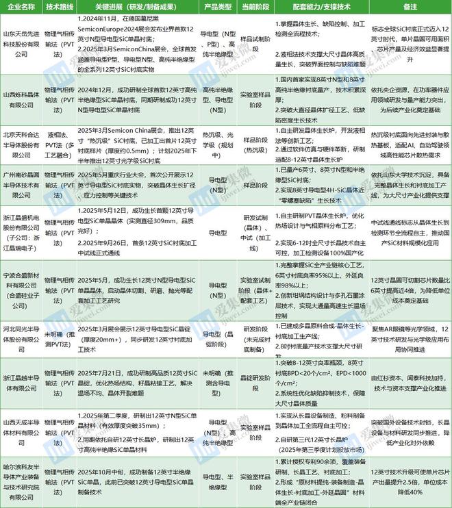 部分企业12英寸SiC衬底突破情况(公开资料整理)