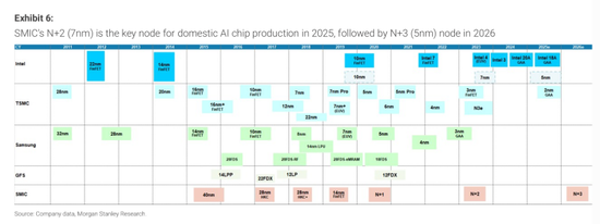 尽管存在这种分流效应,大摩依然维持对中芯国际的“增持”评级,并将其前景优于华虹半导体。分析师强调,SMIC的N+2(7nm)节点有望成为2025年国内AI芯片生产的关键技术点,而2026年的N+3(5nm)节点将进一步增强本土供给能力。