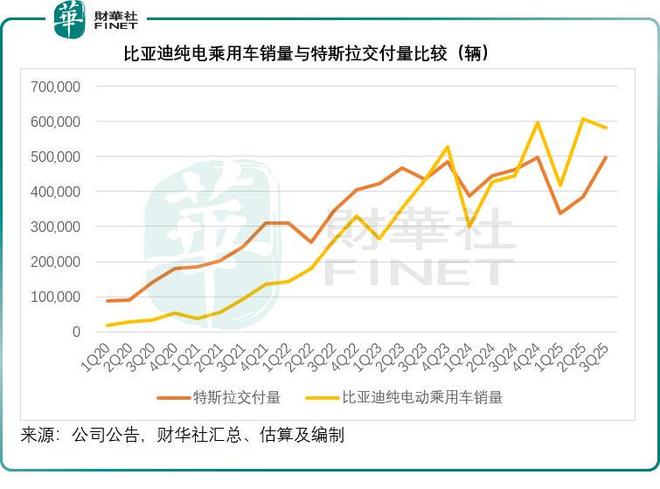 在过去两年,大家总将比亚迪与特斯拉(TSLA.US)相提并论,因为从新能源汽车尤其纯电汽车的交付量来看,两家车企的差距正在缩小。见下图,比亚迪的纯电乘用车销量已成功超越特斯拉,且差距在扩大。