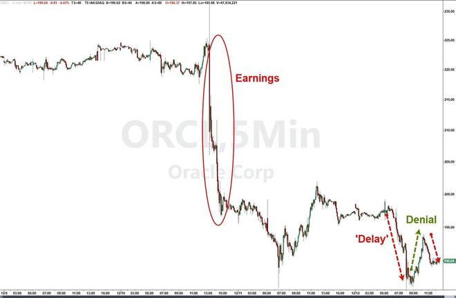 周五当天,甲骨文盘中跌幅一度扩大至6%以上,进一步加剧了前一日业绩公布后暴跌11%后的颓势,甲骨文否认媒体消息后,午盘跌幅还超过4%,收跌近4.5%,公布财报后两日累跌14.8%。截至周五收盘,股价已较9月10日的巅峰跌去40%以上,抹平半年来涨幅。