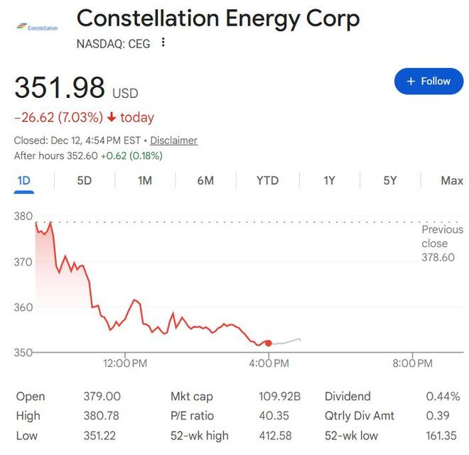 抛售潮甚至蔓延至能源板块,Constellation Energy、Vistra、GE Vernova和Cummins等电力相关股票均跌。核电巨头Constellation收跌7%。