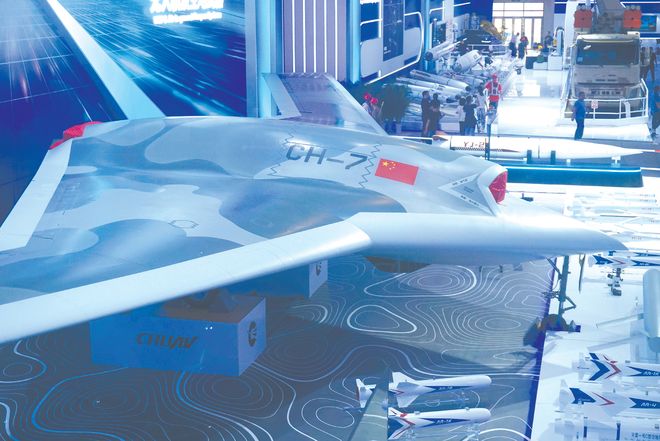 当时现场专家告诉《环球时报》记者,彩虹-7可以承担多元化的战场监视、情报侦察等任务,其机载雷达具备远程空海监视的能力,可以发现大型水面舰船目标,也可在高对抗作战环境中执行持续隐蔽侦察和情报获取、为远距离打击武器提供目标指示信息等任务,大幅提升信息化作战效能,满足未来对称性作战对高端隐形无人作战飞机的需求。