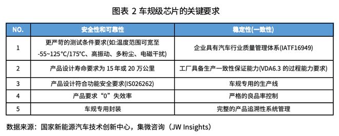 根据中国汽车工程学会发布的团体标准T/CSAE 222—2021《纯电动乘用车车规级芯片一般要求》,国内首次在正式文件中提出“车规级芯片”定义,即“满足汽车质量管理体系,符合可靠性和功能安全要求的集成电路”。