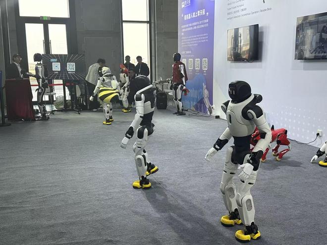 擎天租展台,智元机器人远征A2身着小花袄带来快板表演,还握笔书写“福”“禄”,灵犀X2则换上定制服装化身“小蜜蜂”热舞亮相。