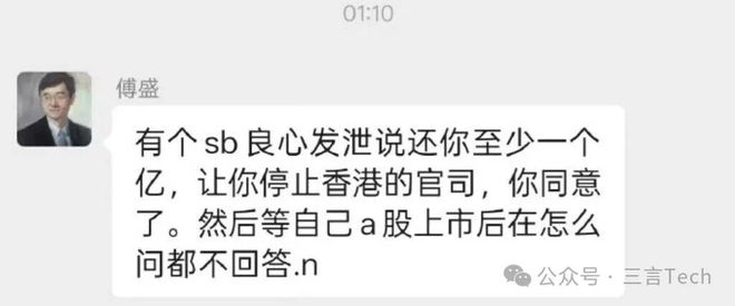 3月20日深夜,傅盛在多个群内开喷360集团创始人周鸿祎,称其“欠钱不还”,还被删除好友。
