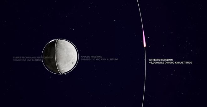 以按时发射计算,“阿耳忒弥斯2号”将超越1970年“阿波罗13号”乘组创下的248,655英里最远距离纪录,预计能够达到252,000英里。