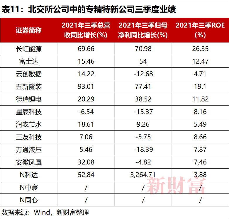 这13家专精特新公司2021年前三季度营收平均增速达29%;净利润增速则有所分化;平均净资产收益率(ROE)为10.54%,高于上证主板(6.1%)、深证主板(2.94%)、科创板(7.69%)、创业板(1.77%)。