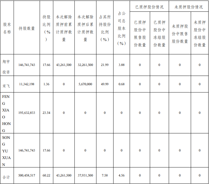 截至公告披露日,上述股东及其一致行动人累计质押股份情况如下: