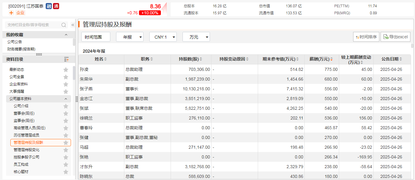 而与此形成鲜明对比的是,除了花大手笔进行投资理财外,公司销售费用常年维持在20亿元左右,且高管薪酬整体较高,2024年总裁助理孙凌年薪为775万元,副总裁朱荣华680万元,董事长张子燕、副总裁金志江、联席总裁张斌、职工监事徐晓兰几人的年薪均超500万元。作为一家地方国有企业,如此之高的薪酬着实令人侧目。