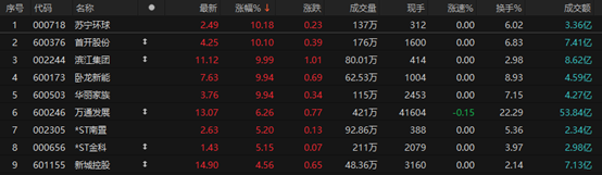 A股房地产板块同样躁动,苏宁环球、首开股份、卧龙新能、滨江集团、华丽家族等多股涨停。