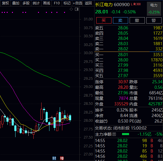 A股市场上,绿色电力板块合计有320多只个股,总市值超6.7万亿元,其中多只个股市值超过千亿元。其中长江电力市值超过6800亿元,公司以大型水电运营为主要业务,为全球最大的水电上市公司,目前水电总装机容量7179.5万千瓦,其中,国内水电装机7169.5万千瓦,占全国水电装机的16.29%。龙源电力市值超过千亿元,公司为我国风电运营龙头,截至2025年6月30日,集团控股装机容量为43196.74兆瓦,其中风电31395.72兆瓦,光伏11794.92兆瓦,其他可再生能源6.10兆瓦。