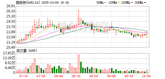 10月9日,奥锐特(605116)发布公告,截至2025年9月30日,公司已累计回购175万股,占总股本的0.43%,回购资金总额为3561万元,回购价格区间为18.83元/股至22.59元/股。
