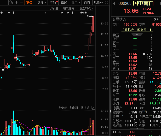 今日涨停的电力设备股中,金盘科技、国电南自、四方股份最新收盘价均创下历史新高。