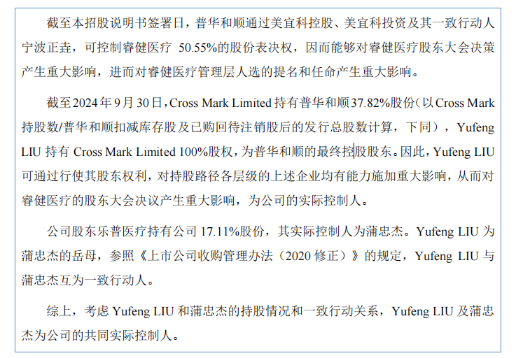 值得注意的是,公司股东乐普医疗(持股17.11%)的实际控制人蒲忠杰为Yufeng LIU的女婿,二人为公司共同实际控制人。
