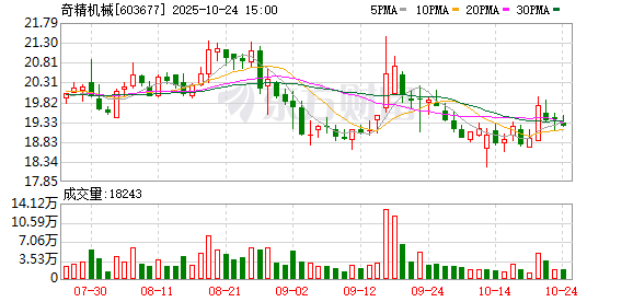 10月24日,奇精机械(603677)公布2025年三季报,公司营业收入为15.4亿元,同比上升4.9%;归母净利润为5269万元,同比上升1.8%;扣非归母净利润为5025万元,同比上升3.2%;经营现金流净额为1806万元,同比下降79.5%;EPS(全面摊薄)为0.2735元。