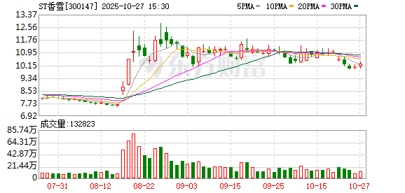 10月27日,ST香雪(维权)(300147)公布2025年三季报,公司营业收入为11.5亿元,同比下降25.3%;归母净利润自去年同期亏损2.18亿元变为亏损3.62亿元,亏损额进一步扩大;扣非归母净利润自去年同期亏损2.05亿元变为亏损3.11亿元,亏损额进一步扩大;经营现金流净额为2727万元,同比增长175.4%;EPS(全面摊薄)为-0.5473元。