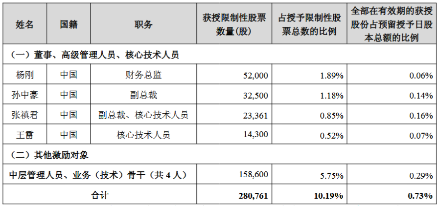 司南导航(688592)发布公告,2025年11月24日,公司向8名激励对象授予预留部分限制性股票,共计28万股,占公司目前股本总额8046万股的0.35%。授予价格为15.72元/股。