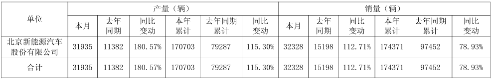 销量中包含部分由公司与北京汽车股份有限公司联合开发的合作车型。
