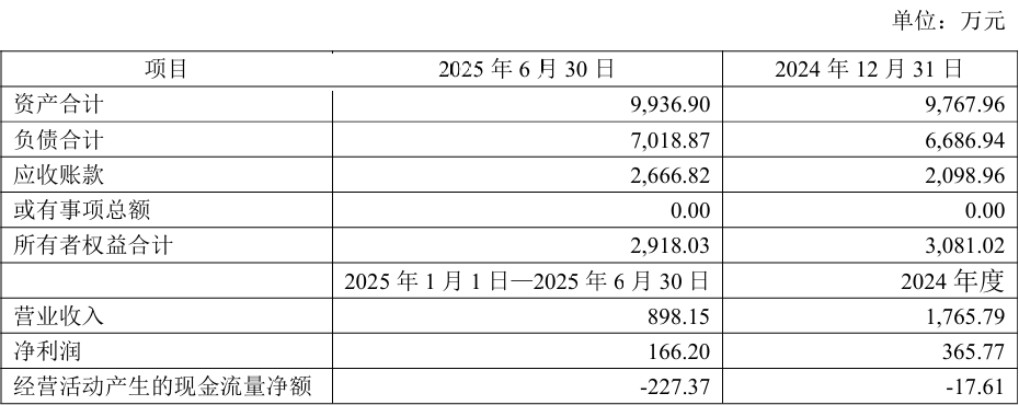 眉山金象截至2025年6月30日一年一期经审计财务数据如下: