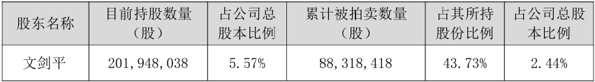 截至本公告披露日,文剑平先生所持股份累计被拍卖情况如下: