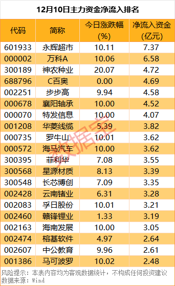 永辉超市净流入居首