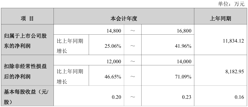 1月19日,远东传动(002406)发布公告,预计2025年度归母净利润约为1.48亿元至1.68亿元,较上年同期增长25.06%至41.96%。具体数据如下:
