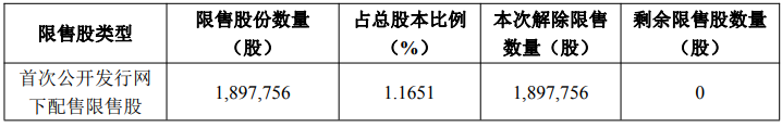 本次解除限售的股东户数为7100户,解除限售股份数量为190万股,占公司总股本的比例为1.1651%。限售期自公司股票上市之日起为6个月,解除限售股的上市流通日定为2026年1月23日。