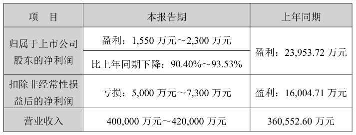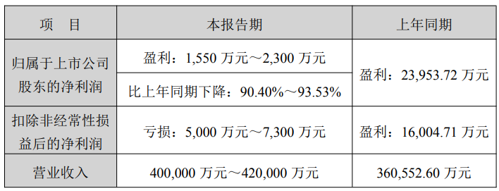1月30日,华宝新能(301327)发布公告,预计2025年度归母净利润为盈利1550万元至2300万元,同比下降90.40%至93.53%。