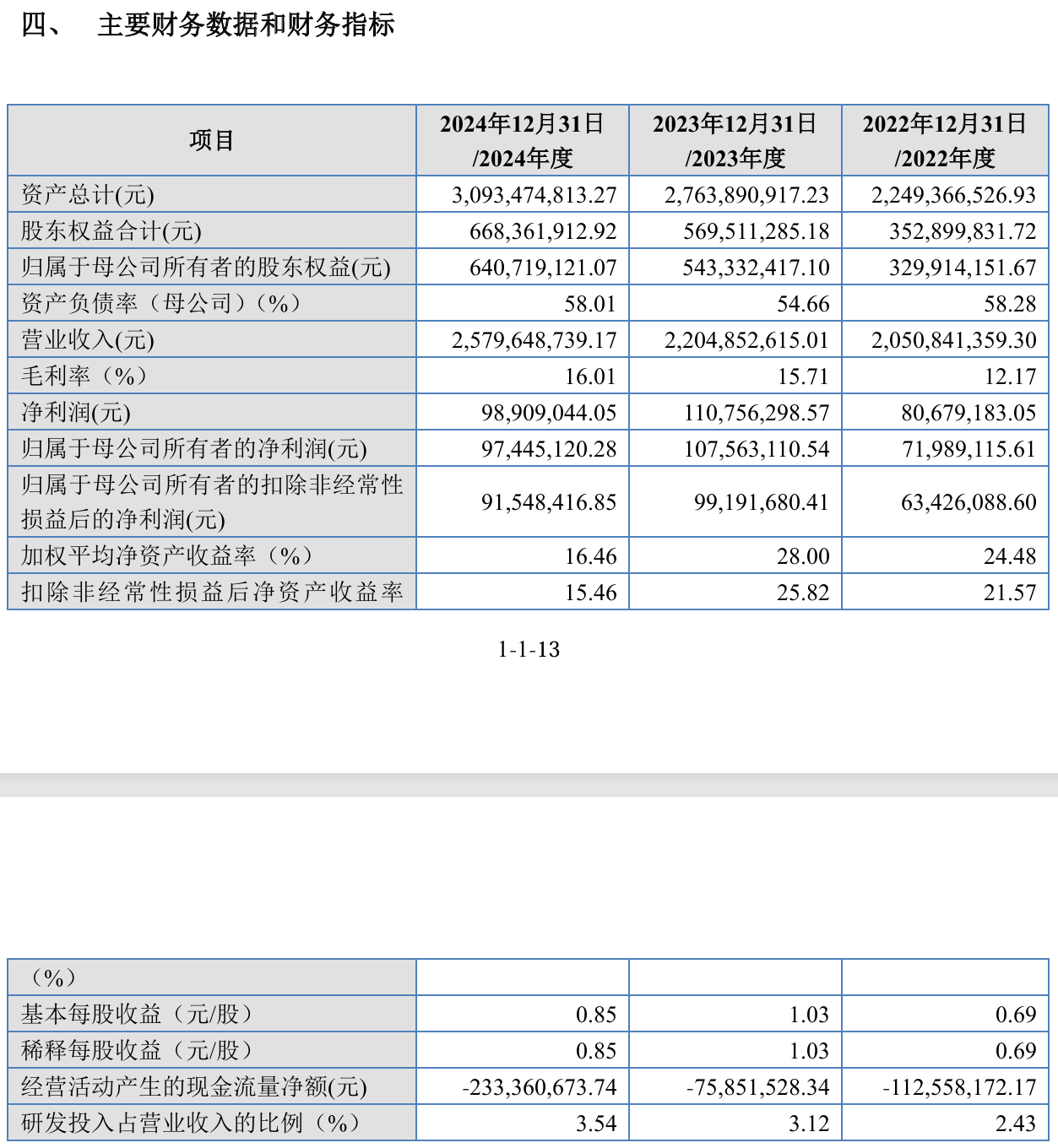 报告期内,公司主营业务收入稳步攀升,从2022年的约20.18亿元增至2024年的25.45亿元,2025年上半年实现15.79亿元,新增项目尤其是新能源车型配套贡献明显。