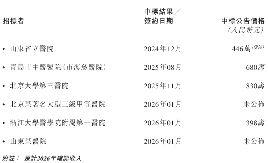 2月9日,爱康医疗(01789)发布公告,公司的全资附属公司北京壹点灵动科技有限公司近日中标浙江大学医学附属第一医院的骨科髋关节手术导航系统等设备项目。此外,在2024年12月至2026年1月期间,公司还获得多项中标。