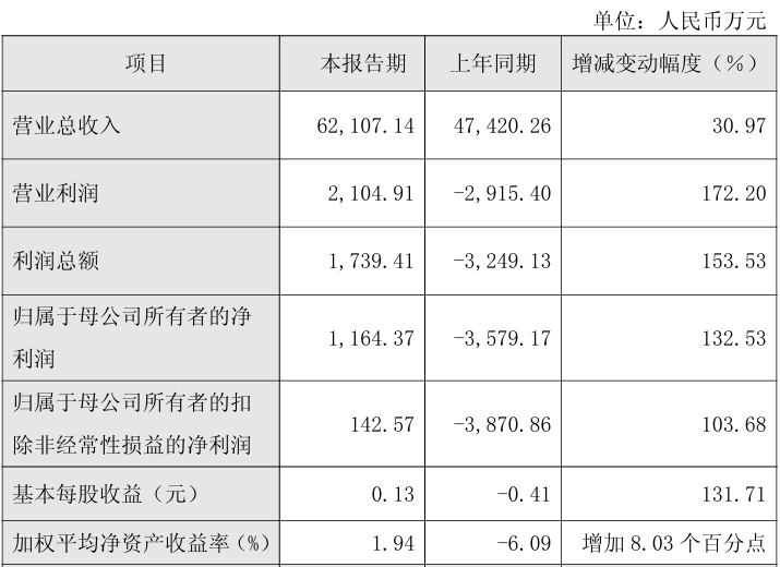 此外,公司的总资产在报告期末为11.73亿元,较期初的10.57亿元增长10.90%。归属于母公司的所有者权益为6.36亿元,同比增长11.54%。
