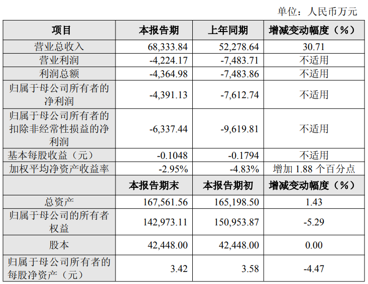2月27日,康希通信(688653)发布公告,公司2025年度主要财务数据初步核算显示,报告期内,公司实现营业总收入6.83亿元,同比增长30.71%;归母净利润约亏损4391万元,较上年同期减亏42.32%。