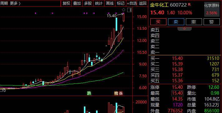 3月12日,金牛化工再度涨停,截至目前,金牛化工9个交易日内已录得5个涨停,累计涨幅为64.18%。