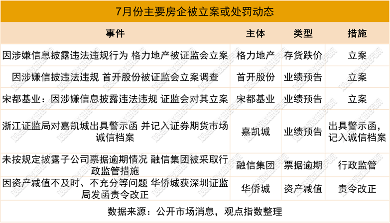 信息披露监管趋严,多家房企被立案。多家房企期内被实施监管措施,有3家房企被立案。这些房企主要涉及存货跌价准备操纵、财报预告披露不准确、部分债务未披露和资产减值不充分等问题。