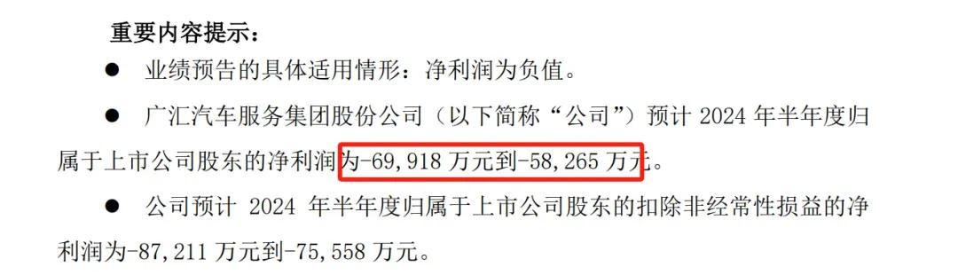 虽然一季度广汇汽车净利润7094.05万元,但其最新披露的预告显示,预计上半年净亏5.83亿元至6.99亿元。