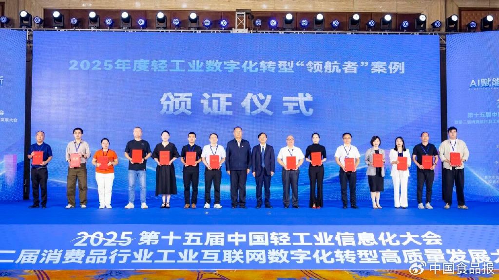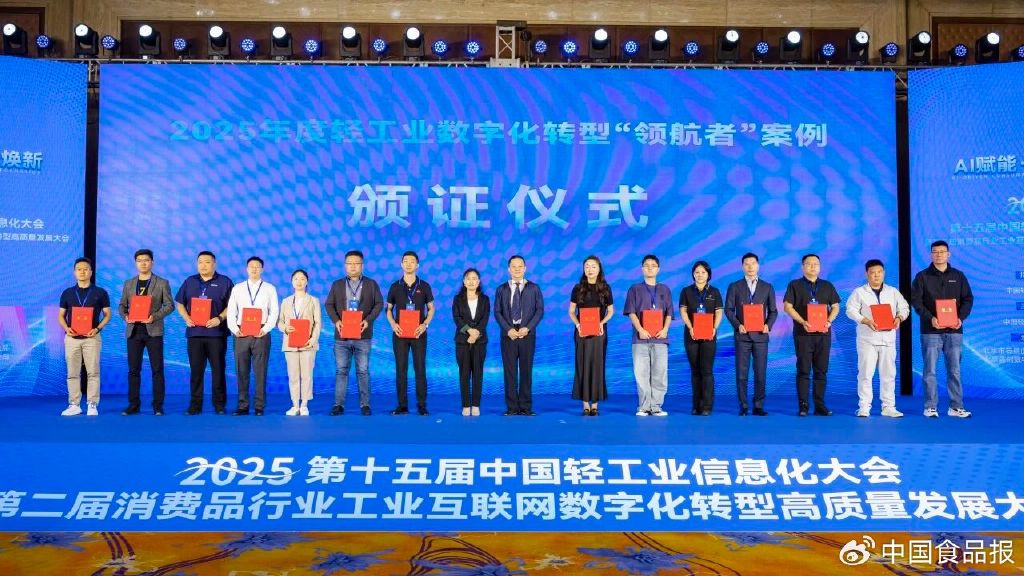 大会还发布了2025年度轻工业数字化转型“领航者”案例名单。人工智能赋能、数据要素赋能、工业互联网建设、先进技术研发应用等110项案例入选。海尔智家、伊利乳业、蒙牛乳业、贵州习酒、纳爱斯集团、波司登、厦门市燕之屋、飞鹤乳业、海信家电、木林森、洋河股份、苏盐井神等企业榜上有名。