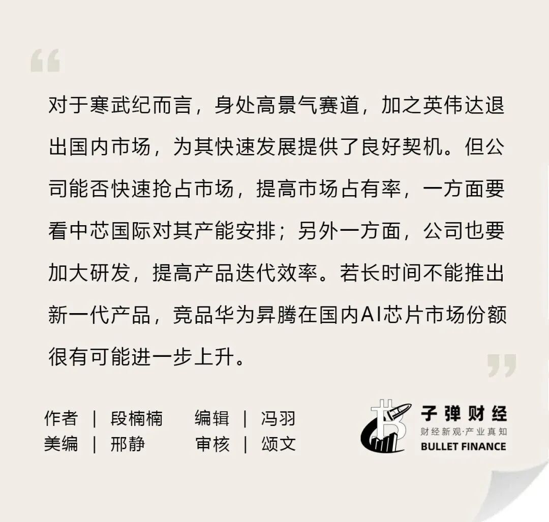 但如此大规模加大该产品备货,后续能否顺利完成销售还是未知之数。虽然英伟达目前已经退出国内市场,但在AI芯片领域寒武纪依然有不少竞争对手,其中最主要的竞争对手便是华为。