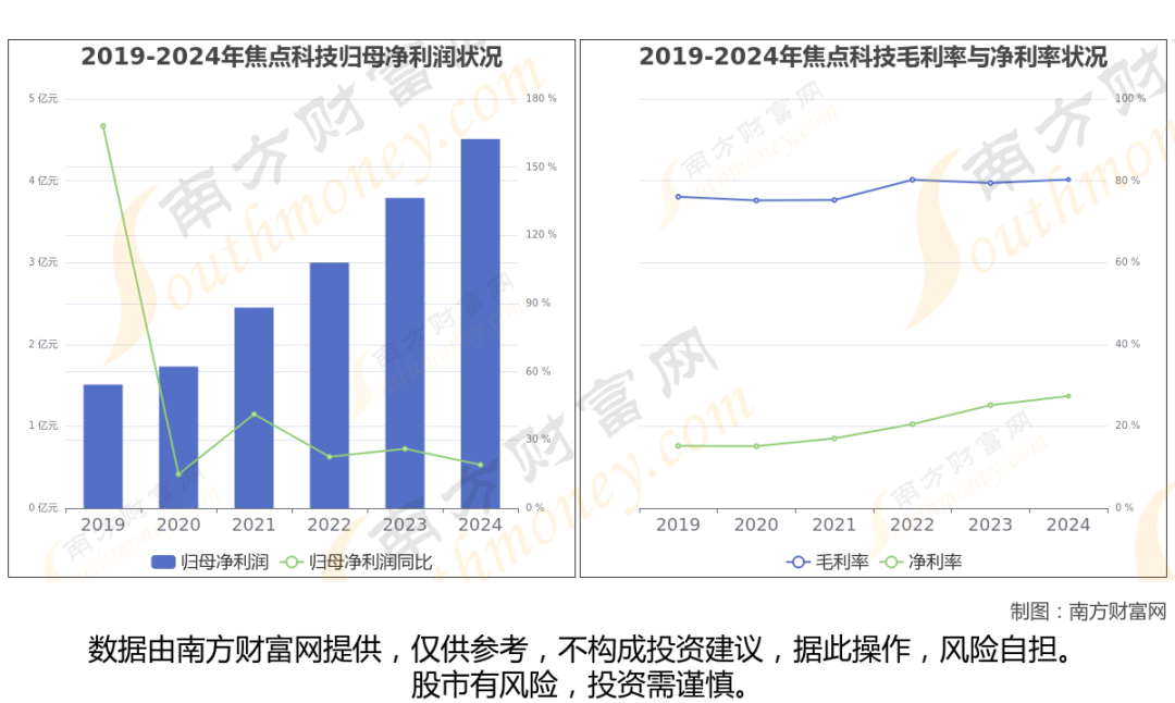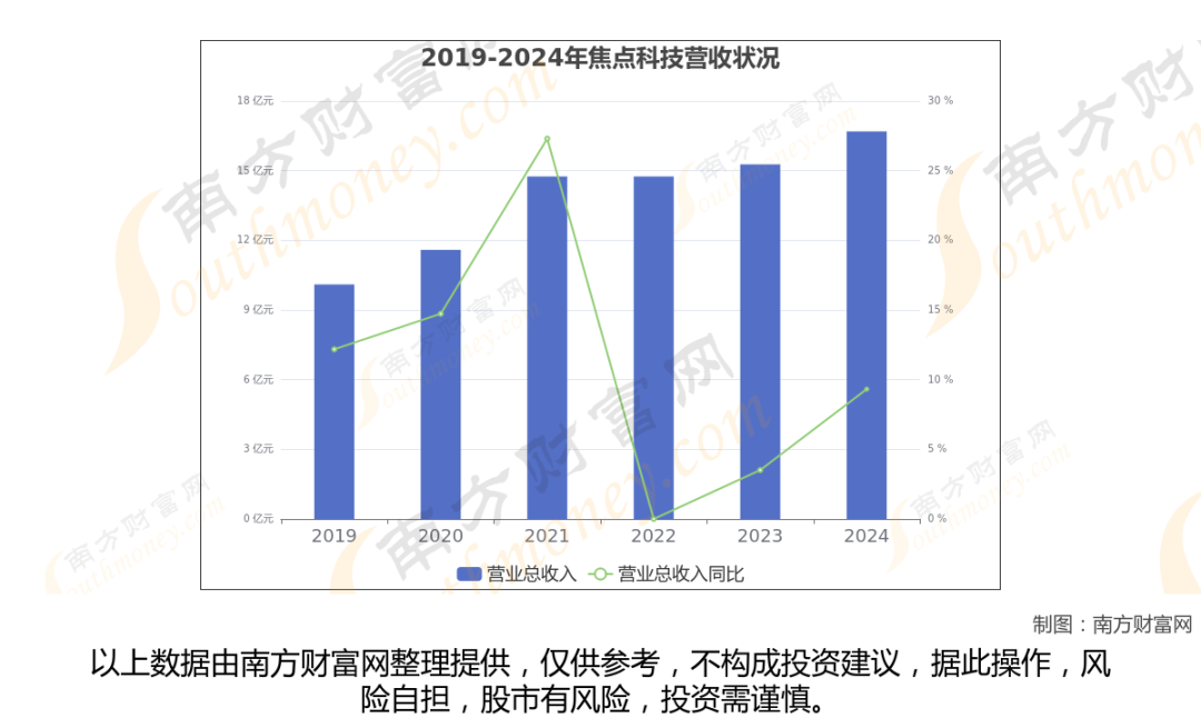 (如上图)焦点科技2024年全年营业收入为16.69亿,同比增长9.32%,近五年复合年增长率9.55%。