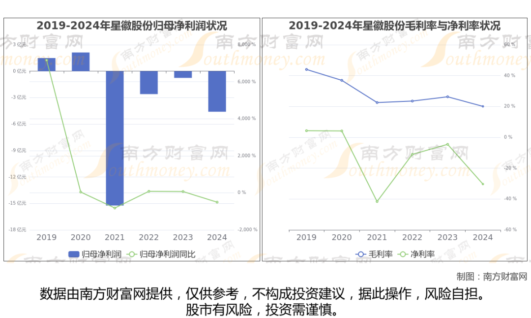 星徽股份2024年数据显示(如上图),公司2024年营业收入15.1亿,同比增长-7.13%,近五年复合年增长率-27.69%。